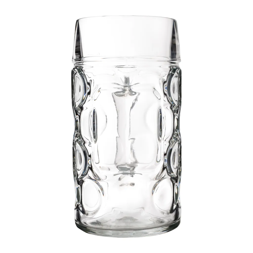 Traditionelle Bier-Maßkrüge fürs Oktoberfest mit Eichstrich und großem Henkel. Die schönen großen Wasserblasen zieren umlaufend die glasklaren Trinkgefäße und verleihen den großen Glasbechern eine wunderschöne 3D-Optik. Die perfekte Grundlage fürs frisch-gezapftes „Kühle Blonde“!