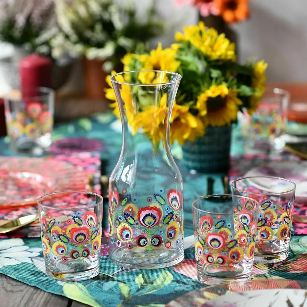 BUNTES DESIGN – Dekorierte FOLK-Gläser sind mit einem farbenfrohen Muster verziert, welches von traditionellen Ausschnitten inspiriert ist. Dank ihnen wird sogar ein gewöhnliches tägliches Essen bunt. Das Motiv der Lowicz-Ausschnitte passt sicherlich sowohl zu traditionellen als auch zu moderneren Innenräumen mit einem vielseitigen Stil.