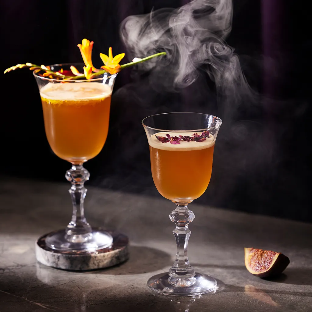 ELEGANTE FORM – Ein tulpenförmiges Glas, welches zart mit einem diamantförmigen Stiel kombiniert wird, schmückt sowohl moderne als auch klassische Innenräume.