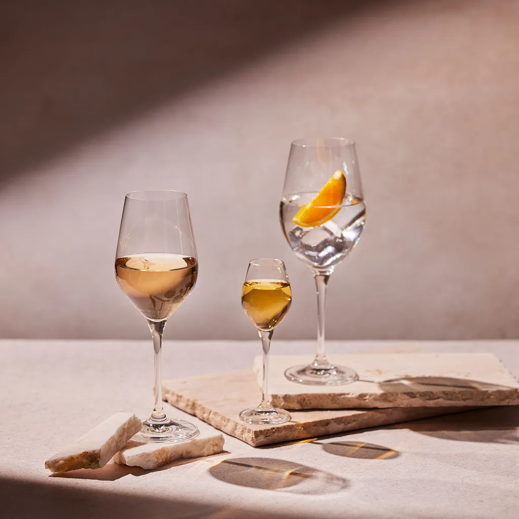 KRISTALLINES GLAS – Das Glas ist absolut transparent. Das Licht wird wunderschön gestreut, sodass Sie die Farbe des Getränks genau betrachten und die interessanten Auswirkungen der Lichtreflexion beobachten können.