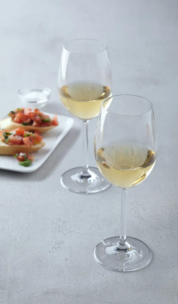 Durch die typische Weißwein-Form des klangvollen Wein-Glases können Weißweine, wie z. B. Chardonnay, Riesling oder Sauvignon Blanc ihr Aroma wunderbar entfalten.