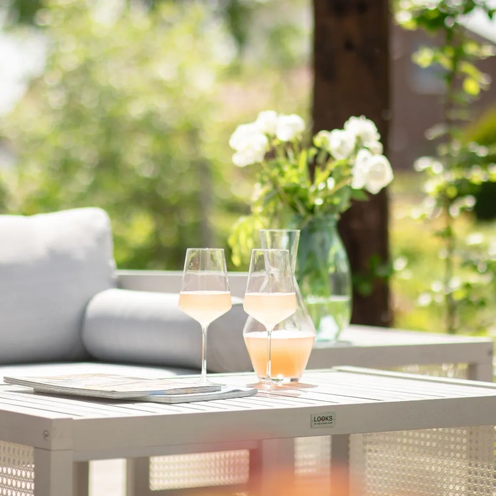 Im Set erhältst Du eine Karaffe und zwei dazu passende Weißweingläser.