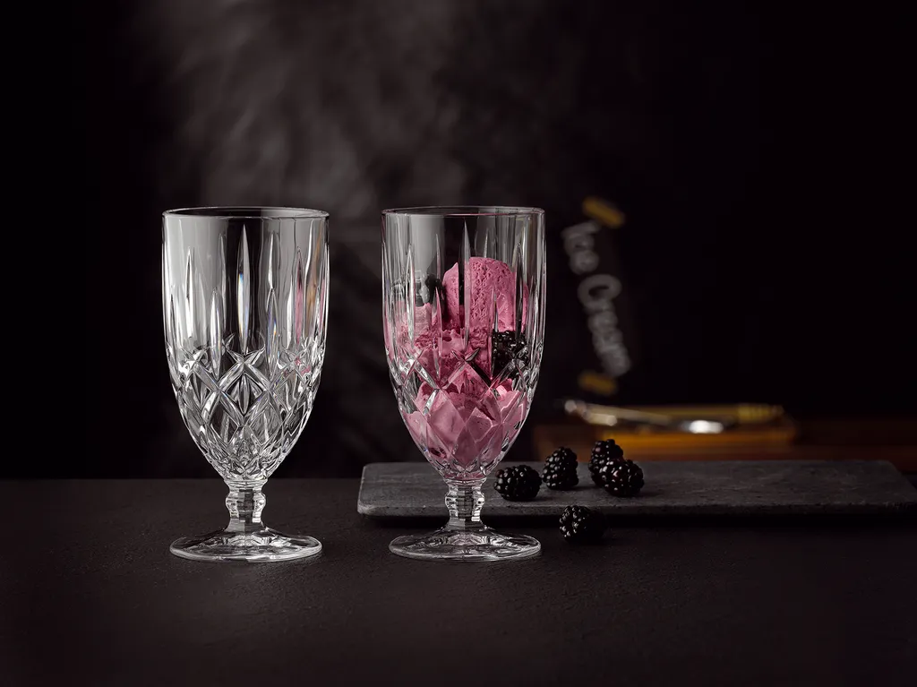2 wundervoll gearbeitete Trinkgläser, die eine elegante Präsentation von Eis, Desserts, Wasser, Softdrinks, Säften, Spirituosen oder auch Cocktails bieten.