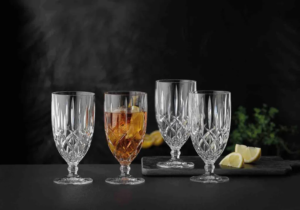 Die Gläser im außergewöhnlichen Schliffdesign sind ohne weiteres mit anderen Artikeln der Noblesse Serie kombinierbar. Dieses Goblet-Set eignet sich ideal für den Alltag und dient als hervorragendes Bierglas für ein Pils oder als Eisteeglas.