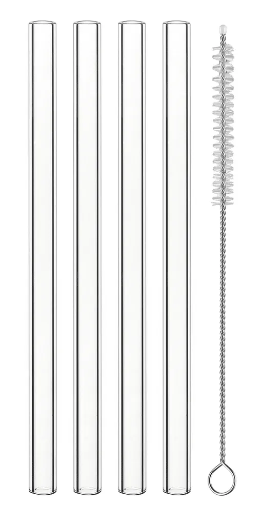 Eine Reinigungsbürste für die Glastrinkhalme ist ebenfalls im Set enthalten.