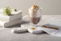 Sie lieben den Geschmack von Latte Macchiato? Ab sofort können Sie den Traum aus drei Schichten auch optisch so richtig in Szene setzen – mit diesen außergewöhnlichen Nescafe Dolce Gusto Latte Macchiato Gläsern. Das besondere Etwas verleiht dem Glas der echige Henkel: Ein Designelement, das Sie Ihren traumhaften Latte Macchiato auf ganz neue Art erleben lässt! Die spülmaschinenfesten und mikrowellengeeigneten Latte Macchiato Gläser à 280 ml (max.) gibt’s im 2er-Pack – schließlich lässt es sich zu zweit doppelt gut genießen!