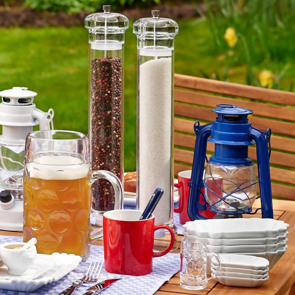 So zünftig wie in München, Nürnberg oder Passau stoßen Sie allerorts mit dem Bavaria-Bierkrug Maß an. Dazu ein paar frische Brezn und würziger Obatzter – schon ist das urige Gefühl perfekt. Passendes Schnapsglas erhältlich.