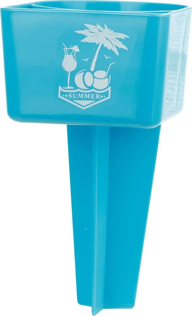 Sie kennen das, da ist man im Urlaub und möchte das Meer mit einem Getränk am Strand genießen, nur wohin mit der Flasche, Dose und dem Smartphone? Hier erhalten Sie die Lösung! Mit unserem praktischem Becherhalter steht das Erfrischungsgetränk nicht mehr im Sand bzw. auf dem Boden. Der aus Kunststoff gefertigte Halter bietet zudem noch Platz um Ihr Handy oder Smartphone zu verstauen. Sie können bei uns aus den Farben grün oder türkis wählen.
